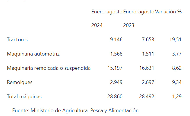 En este periodo, en el campo español se han vendido un total de 28.860 máquinas agrarias, lo que representa un aumento del 1,29 % respecto a los once primeros meses de 2023.