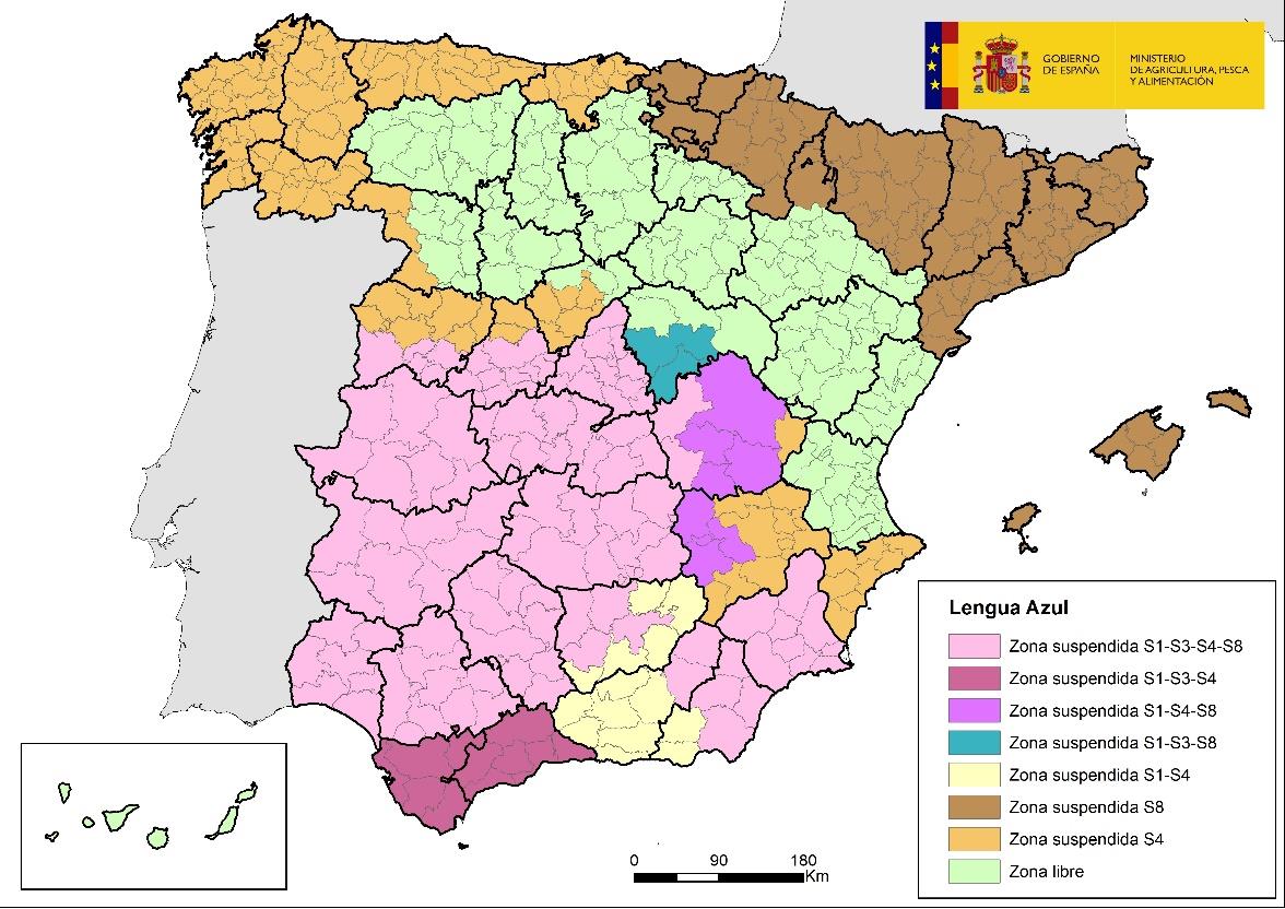 Desde el Ministerio de Agricultura, Pesca y Alimentación, en coordinación con las comunidades autónomas, se está trabajando intensamente en la implementación de las medidas disponibles para limitar la dispersión del virus y reducir el impacto en las explotaciones, tanto en las zonas afectadas como en las zonas libres, facilitando a su vez en la medida de lo posible los movimientos de animales de forma que, se permita la salida de los animales desde las zonas restringidas, ofreciendo al mismo tiempo las garantías sanitarias necesarias para proteger a las zonas libres.