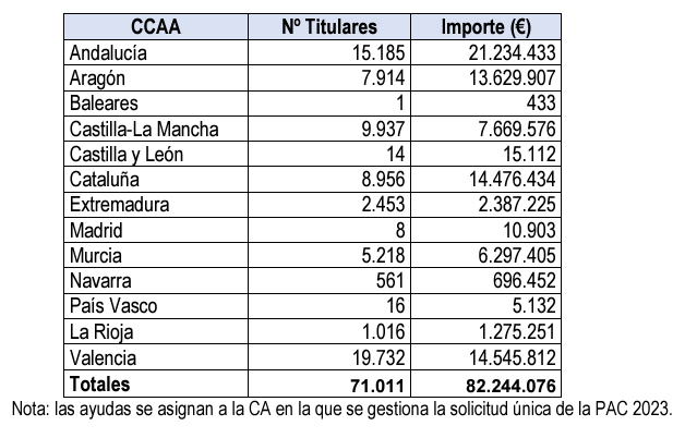 El importe total de pagos abonados por esta ayuda extraordinaria alcanza un total de 82,24 millones de euros, repartidos entre 71.011 agricultores.