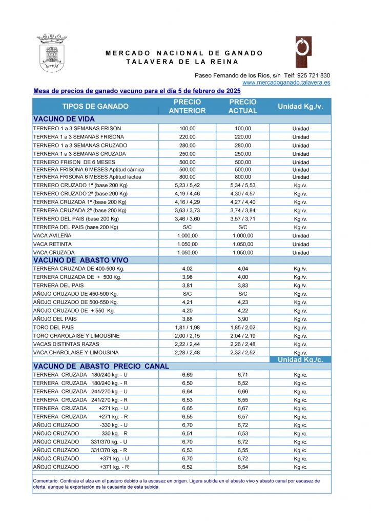 Mercado Nacional de Ganado. Talavera de la Reina. Vacuno. 5-febrero-2025