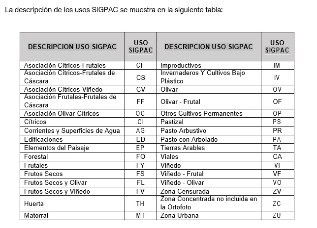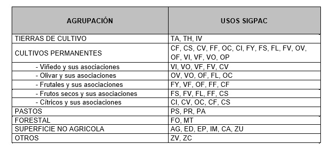 Los usos SIGPAC se han agrupado como se muestra a continuación: