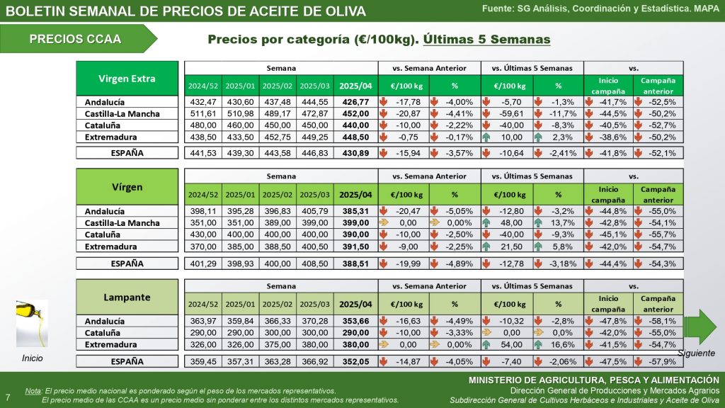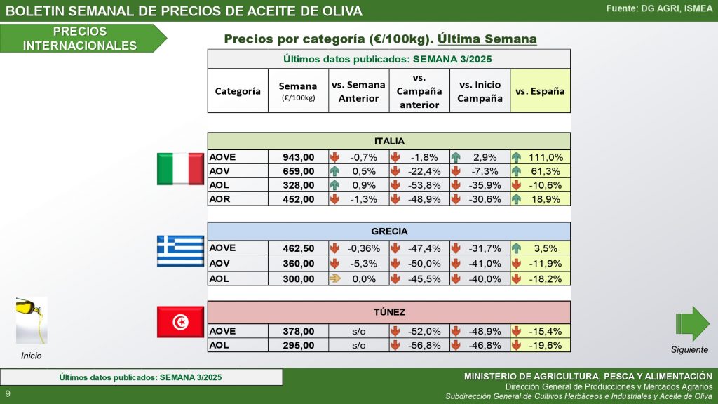 Boletín de Mercado del Aceite de Oliva del Ministerio de Agricultura