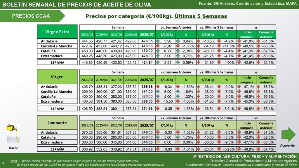 Boletín de Mercado del Aceite de Oliva del Ministerio de Agricultura