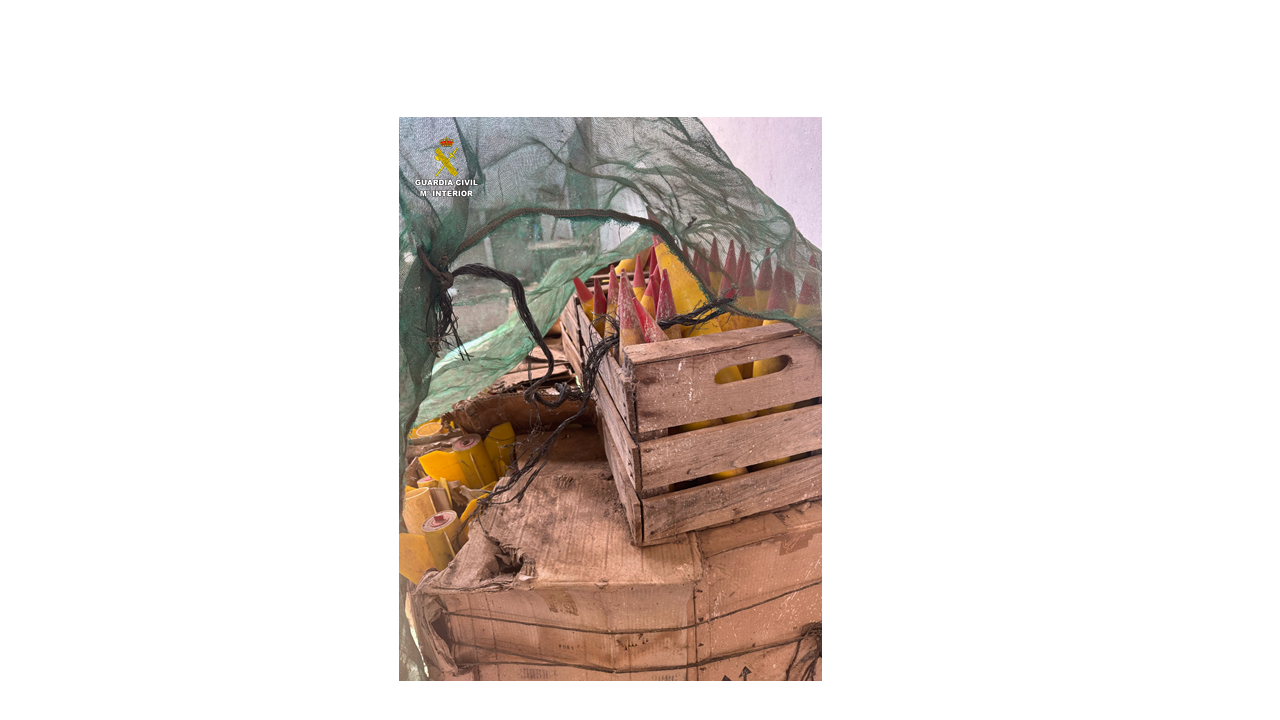 Una vez en el lugar del hallazgo, comprobaron la existencia de un palé con varias cajas de madera y cartón conteniendo un total de 67 cohetes antigranizo marca CETME, modelo COTA 3000 de una empresa pirotécnica ubicada en el pasado en Barcelona.