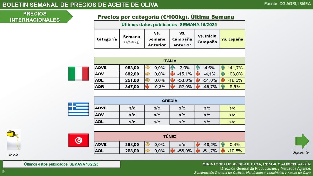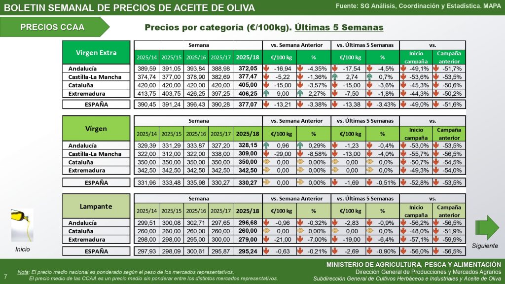 Boletín de mercado del aceite de oliva del Ministerio de Agricultura