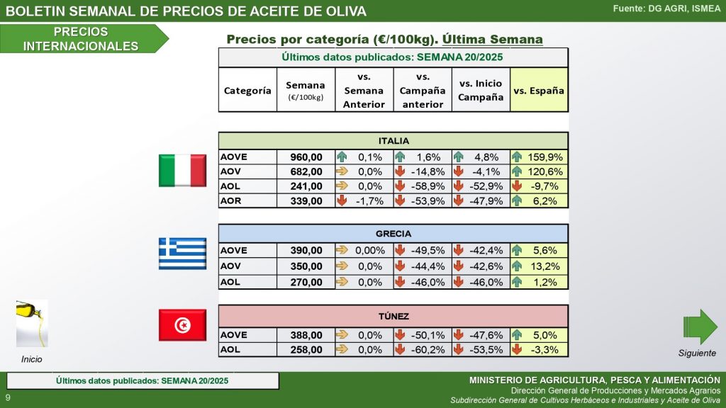 Boletín de mercado del aceite de oliva del Ministerio de Agricultura