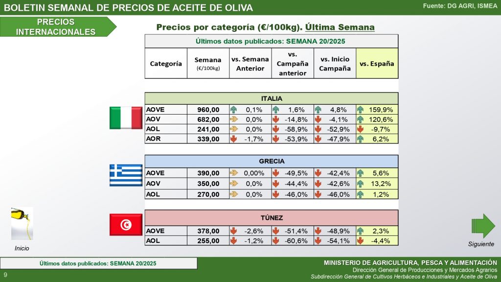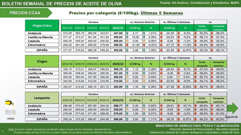 Boletín de mercado del aceite de oliva del Ministerio de Agricultura
