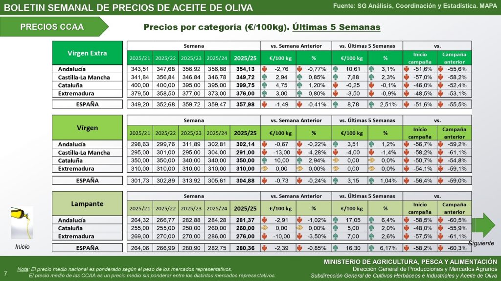 El precio medio del aceite del 23 al 29 de junio según la Junta de Andalucía es: