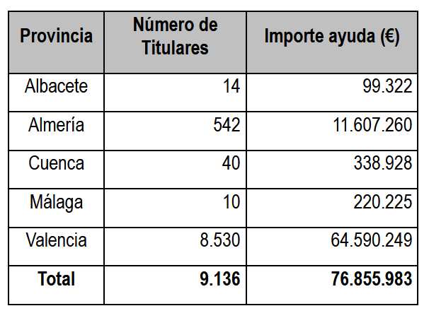 En este caso, la cuantía se reduce. Estas ayudas, aprobadas por el Gobierno de España, tienen el objetivo de compensar la pérdida de renta de los titulares de explotaciones agrarias afectados por la dana.