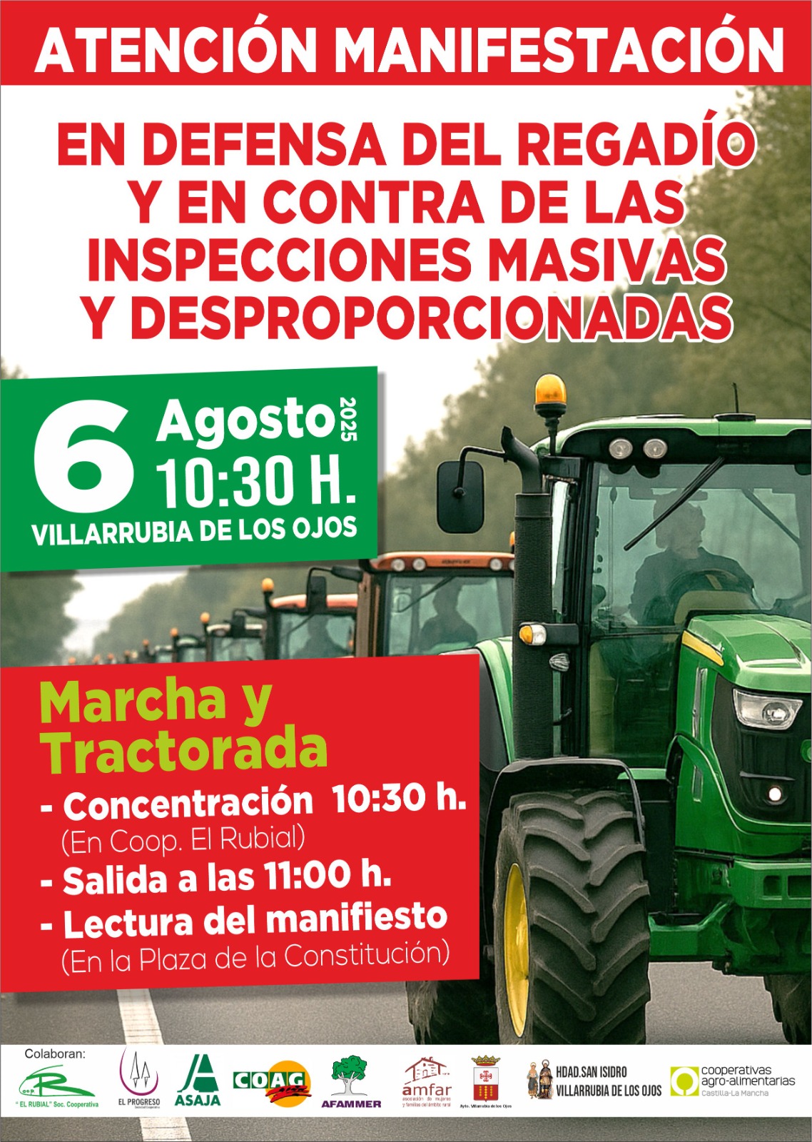 Tendrá lugar el miércoles 6 de agosto, a las 11:00 horas, partiendo de la Cooperativa ‘El Rubial’ de la localidad manchega y finalizando a mediodía en la Plaza de la Constitución, donde se dará lectura al manifiesto reivindicativo.