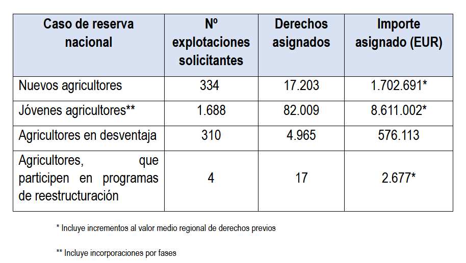 Desde 2023 se han incorporado dos nuevos casos de acceso a la reserva nacional, que se atienden tras cubrir a los jóvenes y nuevos agricultores, siempre que exista remanente.