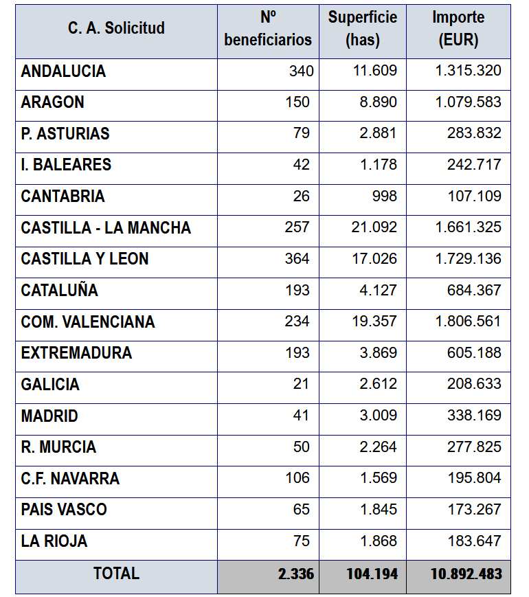 En el año 2024, un total de 310 agricultores accedieron a la reserva nacional por el primer supuesto, y recibieron una ayuda media de 1.858 euros. Por su parte, los cuatro responsables de explotación que participaron en programas de reestructuración percibieron una ayuda media de 669 euros.