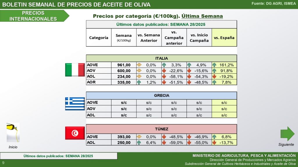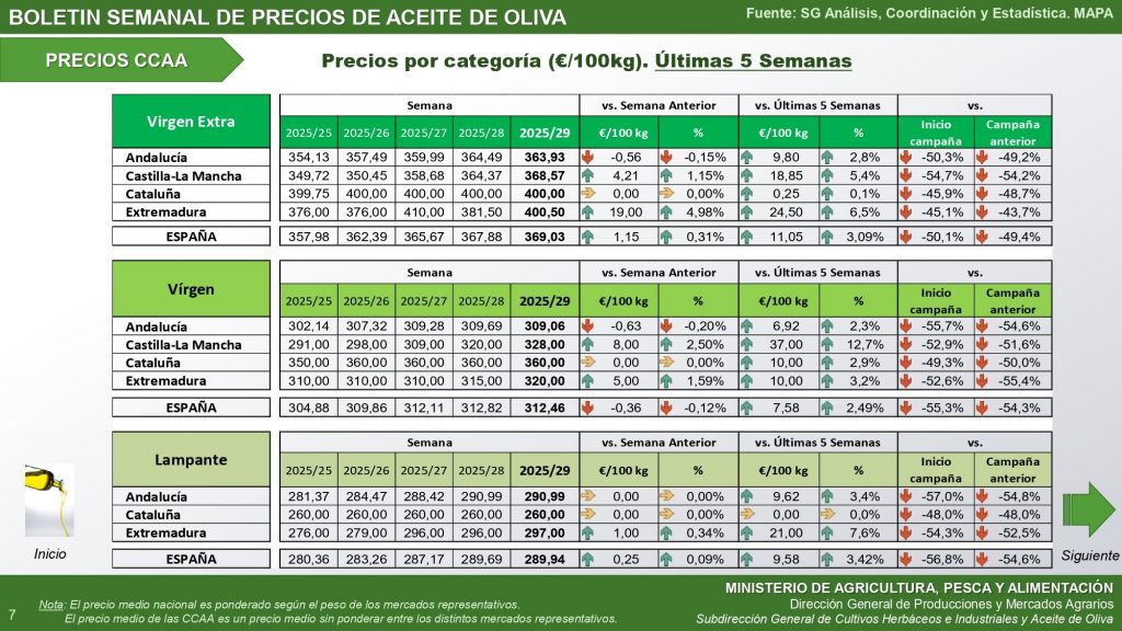 Boletín de mercado del aceite de oliva del Ministerio de Agricultura