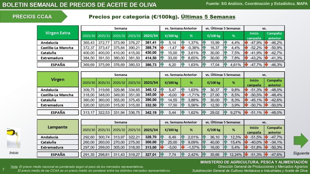 Boletín de mercado del aceite de oliva del Ministerio de Agricultura