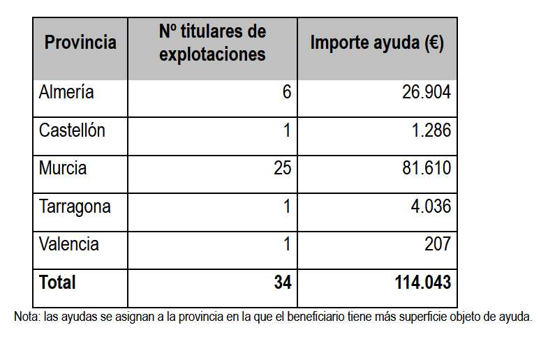 La nueva resolución contempla el pago a 34 titulares de explotaciones, por un importe de 114.043 euros. Estas ayudas se enmarcan en el paquete de medidas excepcionales impulsada por el Gobierno para apoyar al sector agrario y los fondos provienen de la reserva agrícola de la Unión Europea (UE).