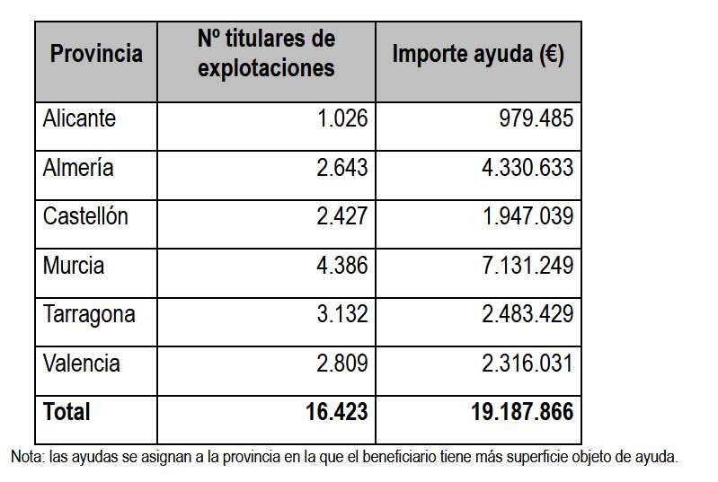 La ayuda está destinada a productores de frutos de cáscara de secano en las provincias de Almería, Alicante, Castellón, Murcia, Valencia y Tarragona, así como a productores de avellano en regadío en Tarragona, que han padecido la falta de agua el pasado año.