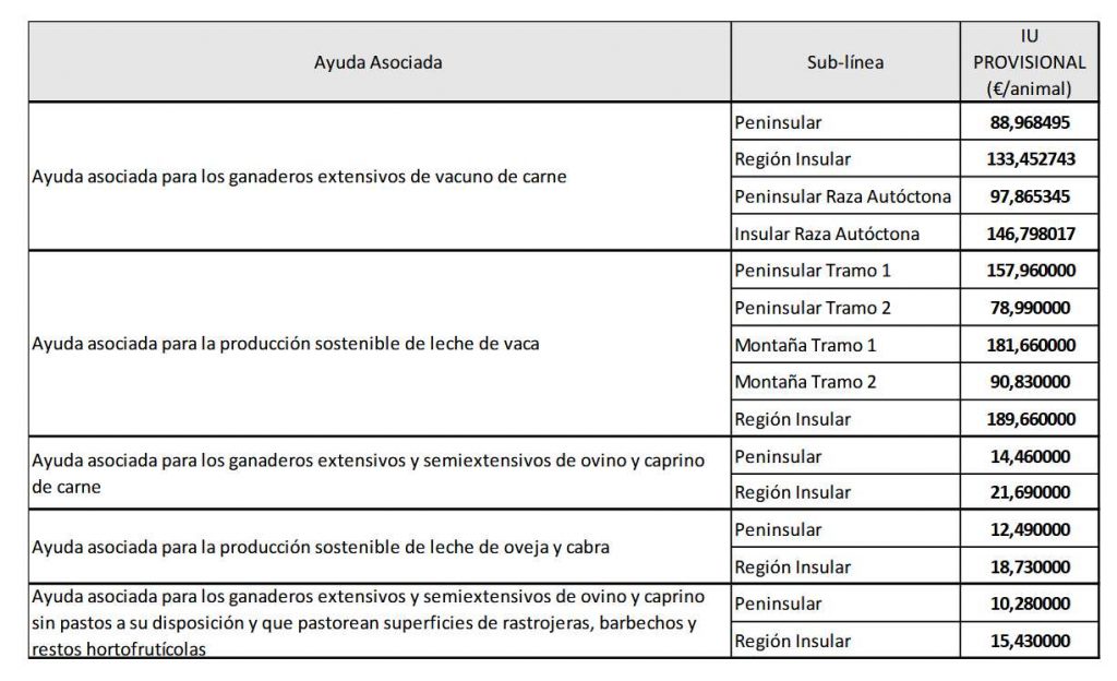 El Fondo Español de Garantía Agraria (FEGA) ha publicado el importe unitario provisional de las ayudas asociadas a la ganadería de la campaña 2025.