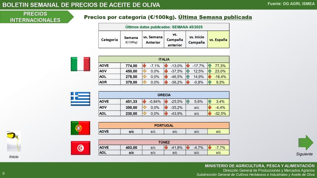 Boletín de mercado del aceite de oliva del Ministerio de Agricultura
