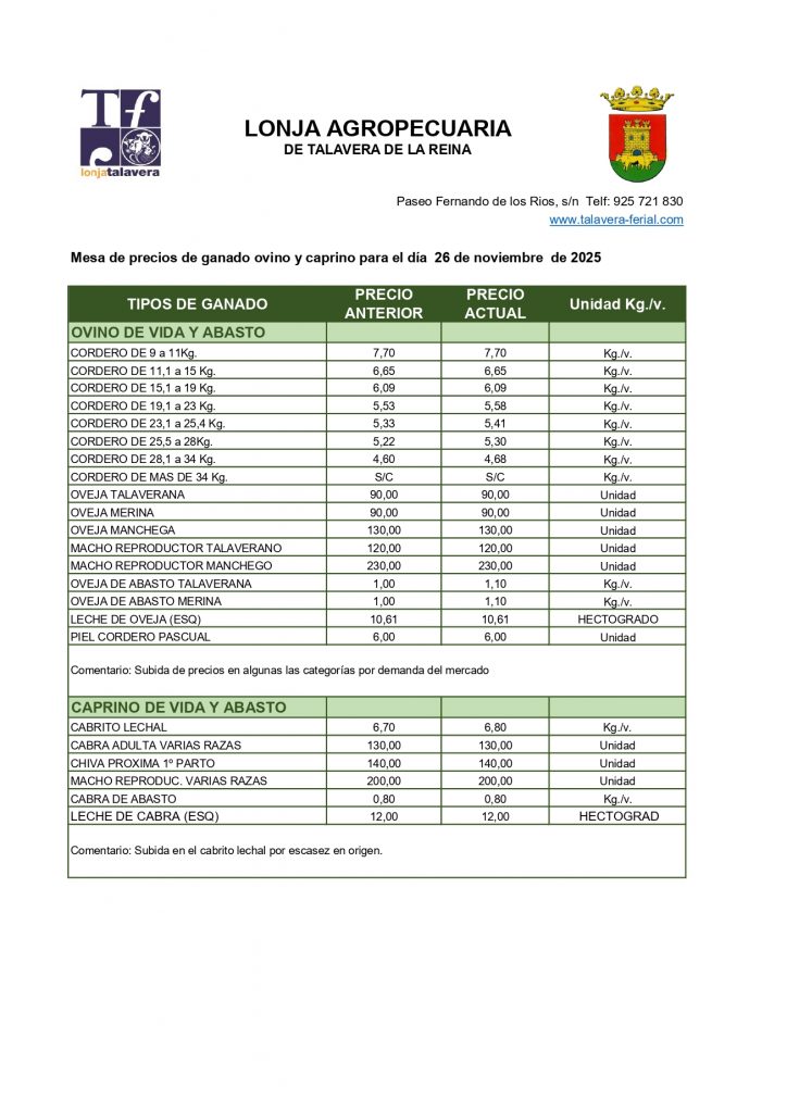 Lonja Agropecuaria de Talavera. Ovino. 26-noviembre-2025