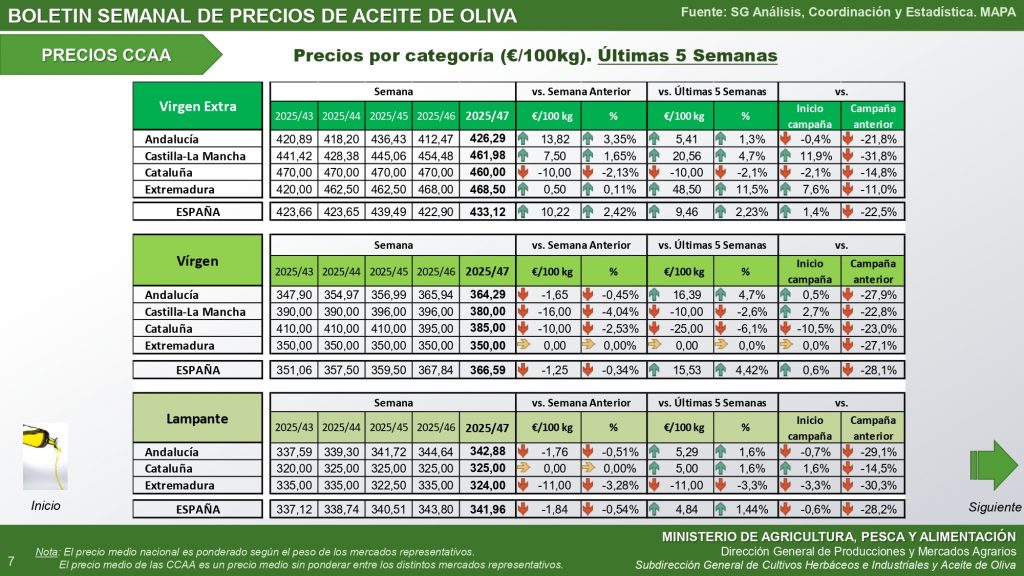 Boletín de mercado del aceite de oliva del Ministerio de Agricultura