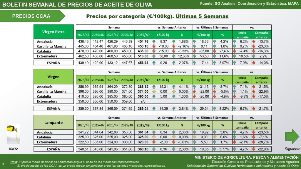 Boletín de mercado del aceite de oliva del Ministerio de Agricultura