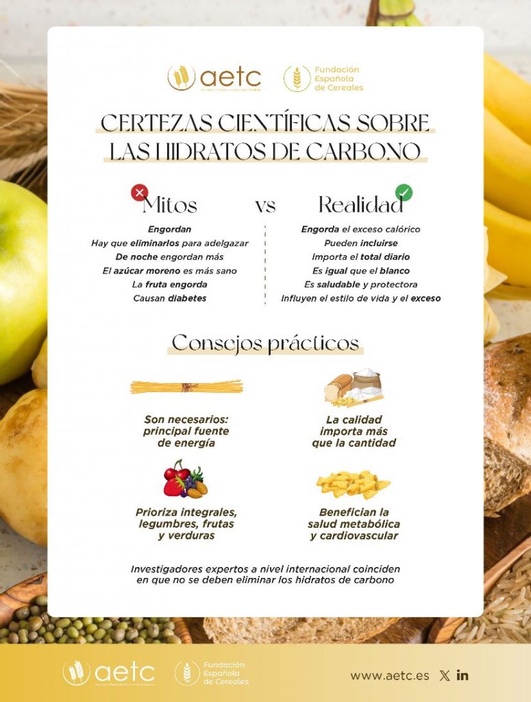 En definitiva, el documento concluye que, lejos de ser un nutriente a evitar, los hidratos de carbono forman parte de patrones alimentarios saludables, equilibrados y sostenibles. Apostar por información veraz y decisiones basadas en la ciencia es clave para combatir la desinformación nutricional y mejorar la salud de la población.