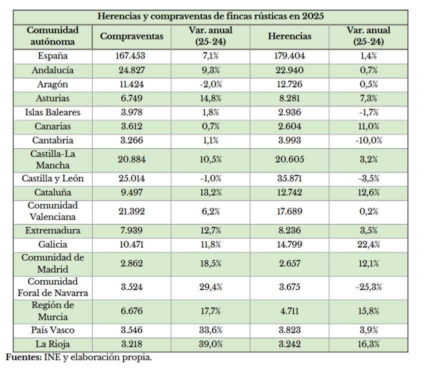 Herencias y compraventas de fincas rústicas en 2025