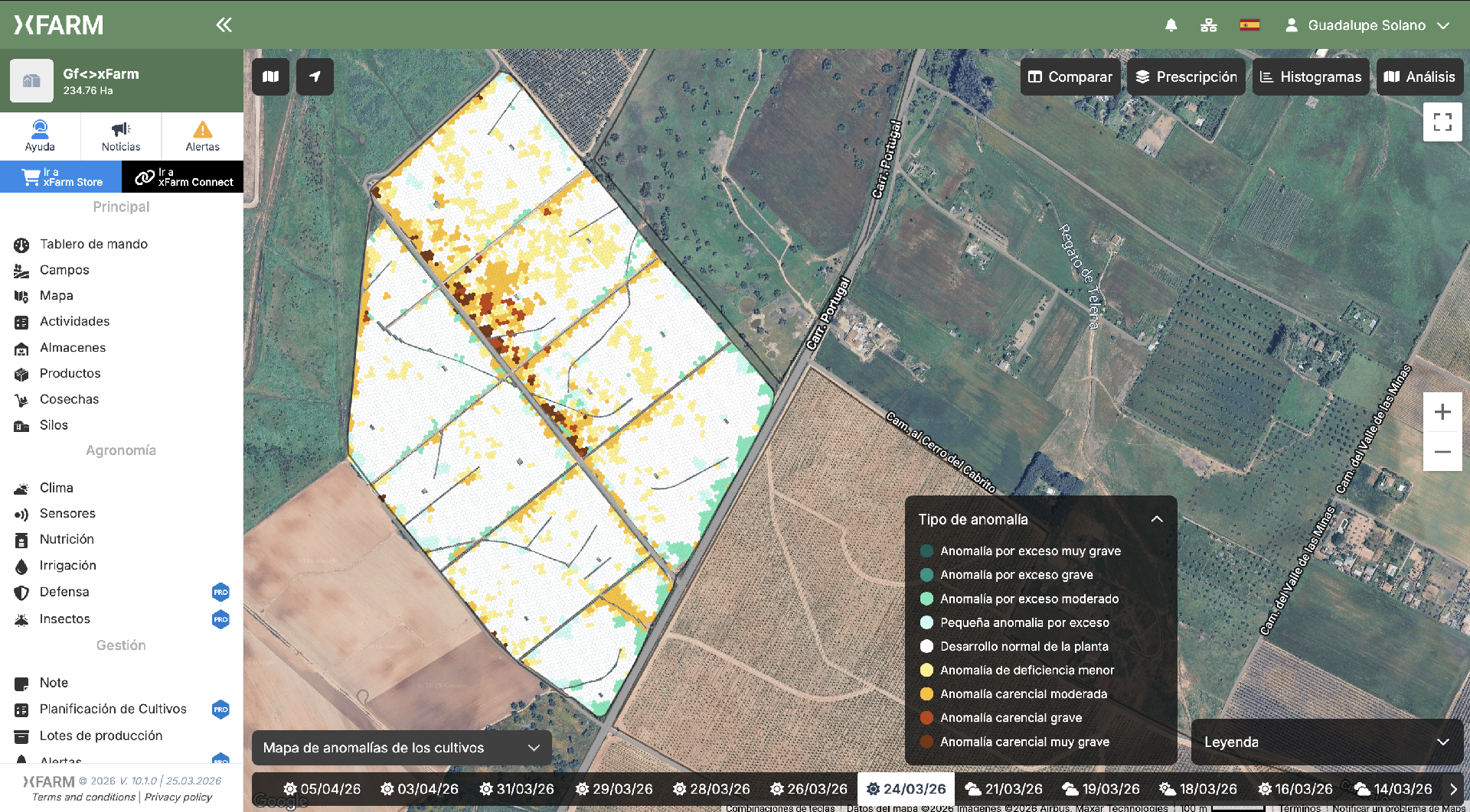 El sistema combina datos satelitales con variables meteorológicas en tiempo real, lo que permite diferenciar entre factores no controlables (clima, suelo o fenología) y factores controlables (abonado, tratamientos y manejo agronómico). Así, el agricultor puede identificar el origen de cada anomalía y actuar con mayor precisión.