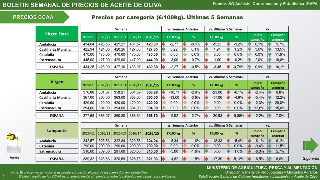 Boletín de mercado del aceite de oliva del Ministerio de Agricultura
